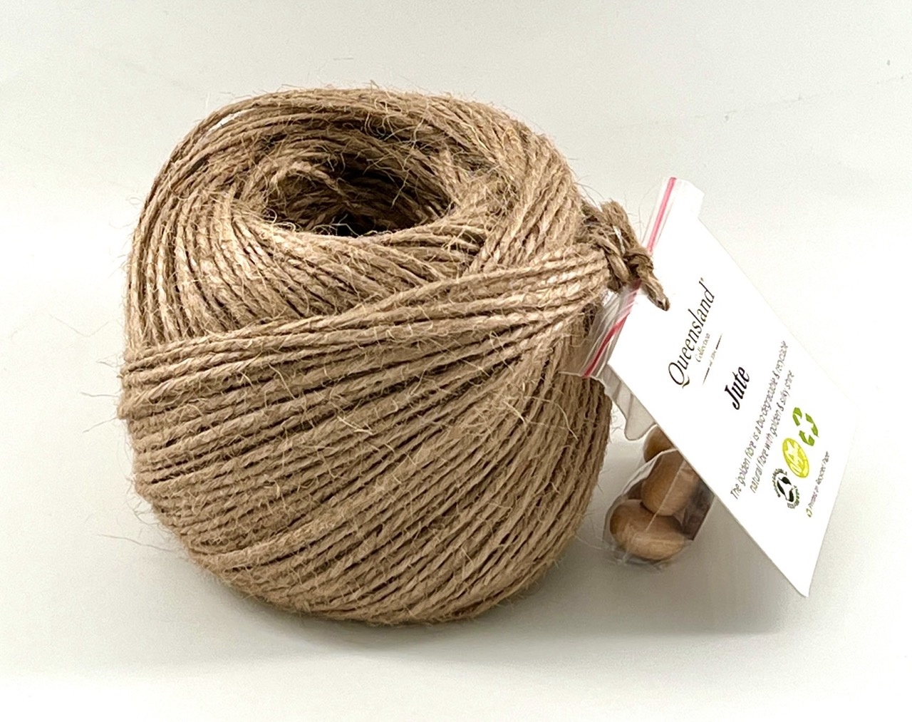 Komt met een paar decoratieve houten kralen en een houten handmade-label.